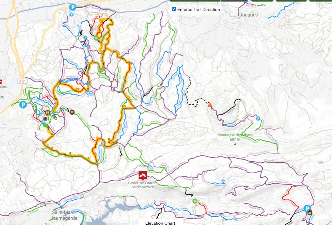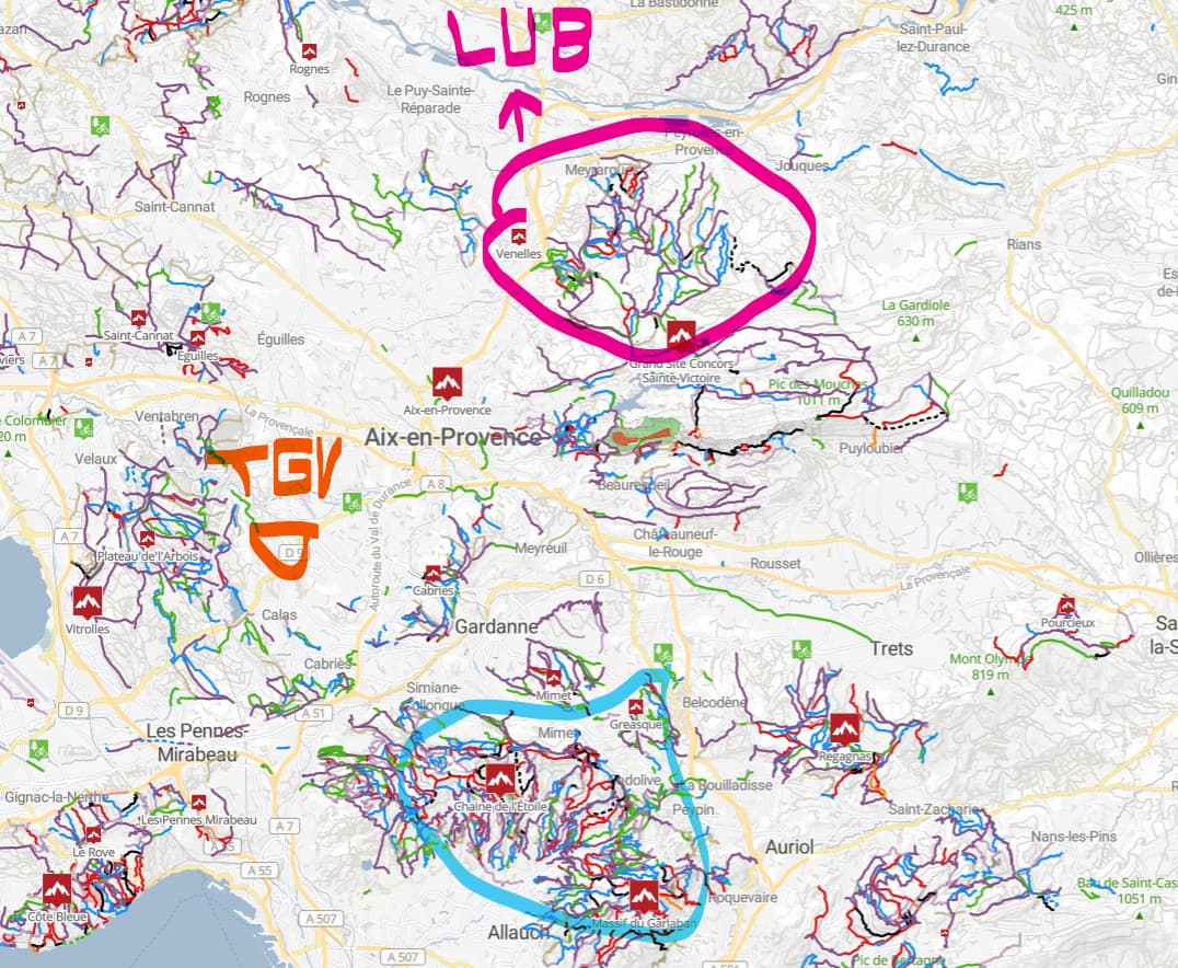 En chargeant la trace sur TF, on voit qu'on peut passer une seconde journée dans le massif facilement, avec pourquoi pas aller voir la vue côté Ste Victoire au sud.