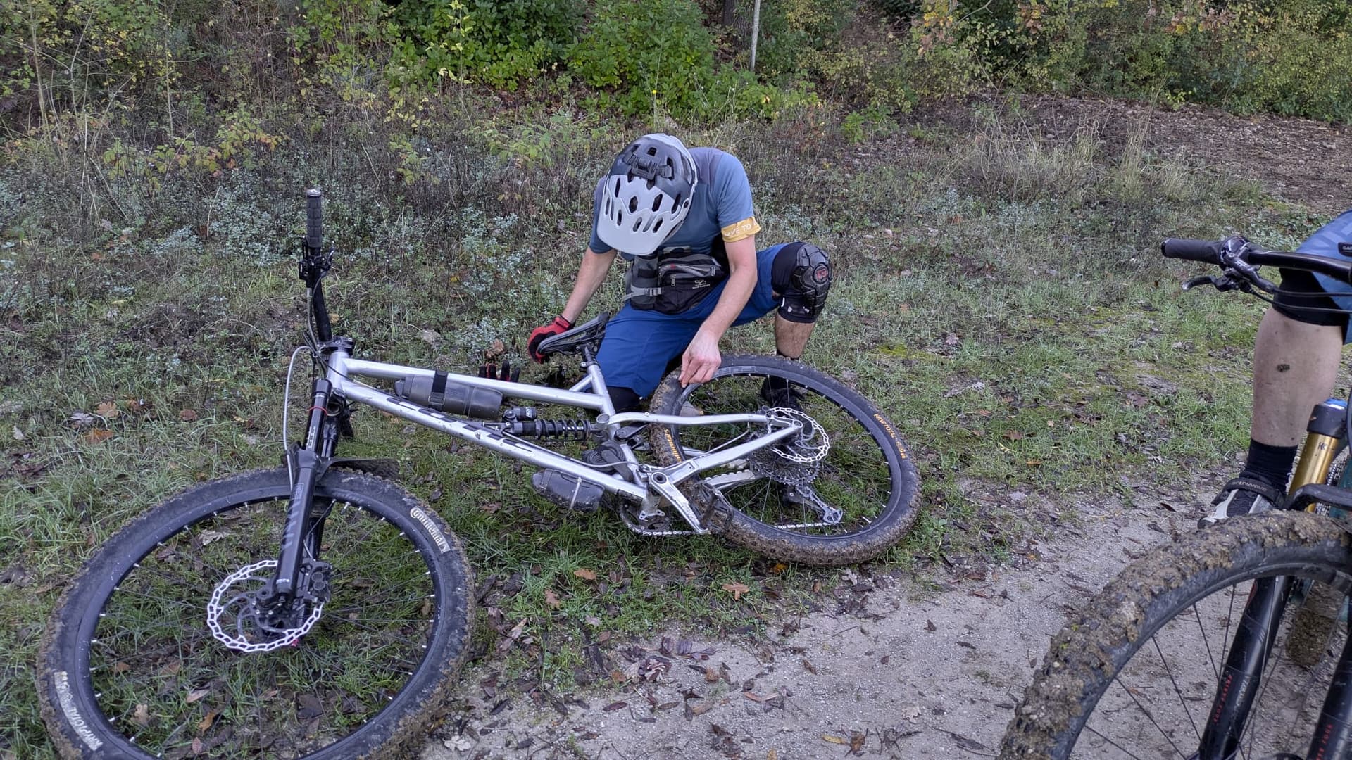 Chez les autres ce n'est pas la même tambouille, sur la seconde descente du massif de l'étoile c'est @hpman83 qui déchire son pneu neuf sur plus de 10cm (Marseillais), l'histoire dit que 14 mèches y seront passées.