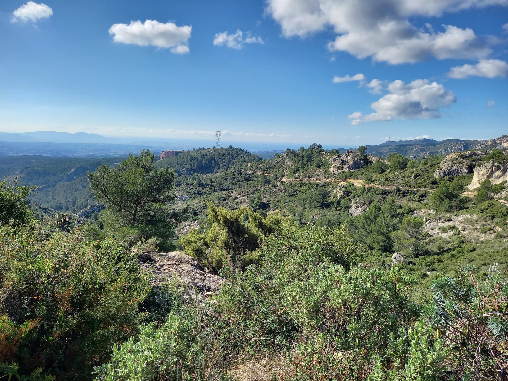 Un peu de liaison via sentiers jusqu'à la DFCI et c'est parti pour une petite montée. On part côté Nord du massif et on arrive au sommet via le versan Sud.