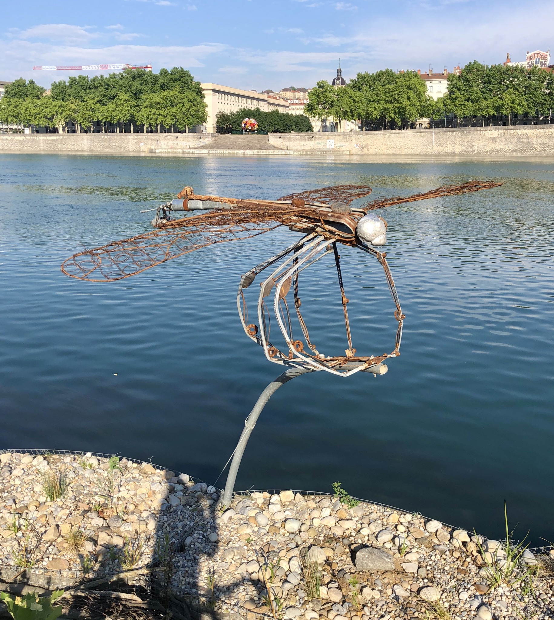 ...pour rejoindre les quais où une libellule en acier est apparu depuis le confinement. Bifurcation sur la piste de la Part Dieu (je surveille si je ne croise pas @Fab, je suis sur ses terres, quoique pas dans ses heures