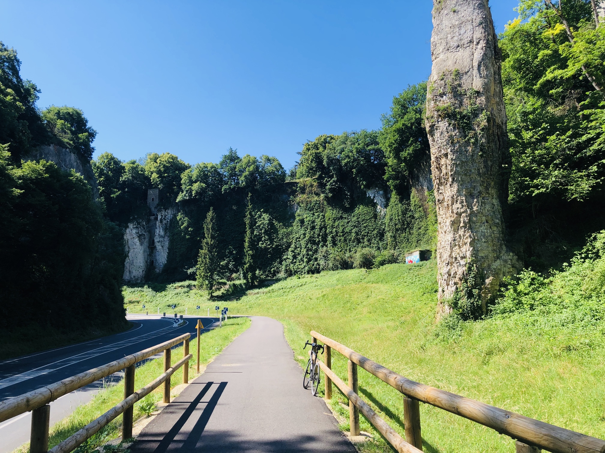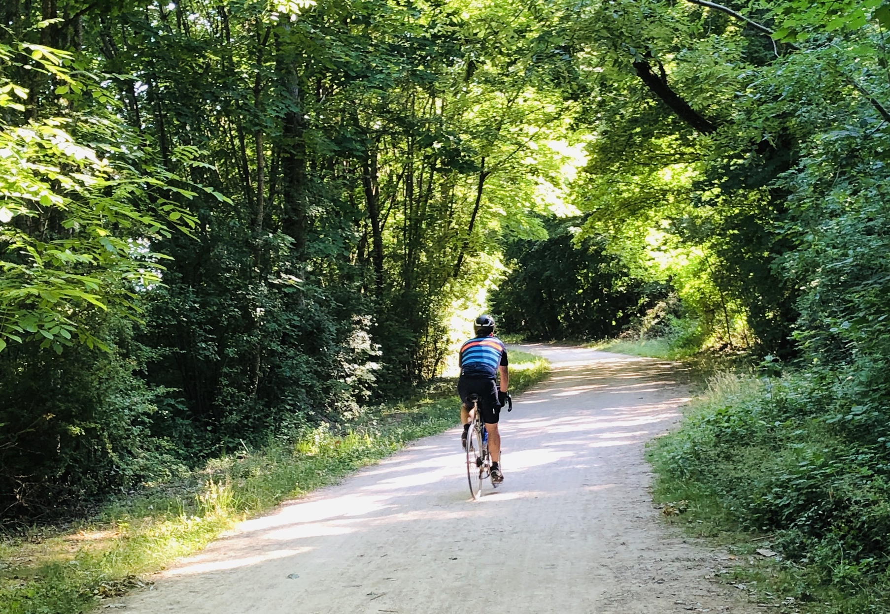 Je sorts de la ville par la nouvelle voie verte. Sympa mais rapidement le bitume cède la place à un chemin blanc un poil miné. Pas grave 3km plus loin je bifurque.