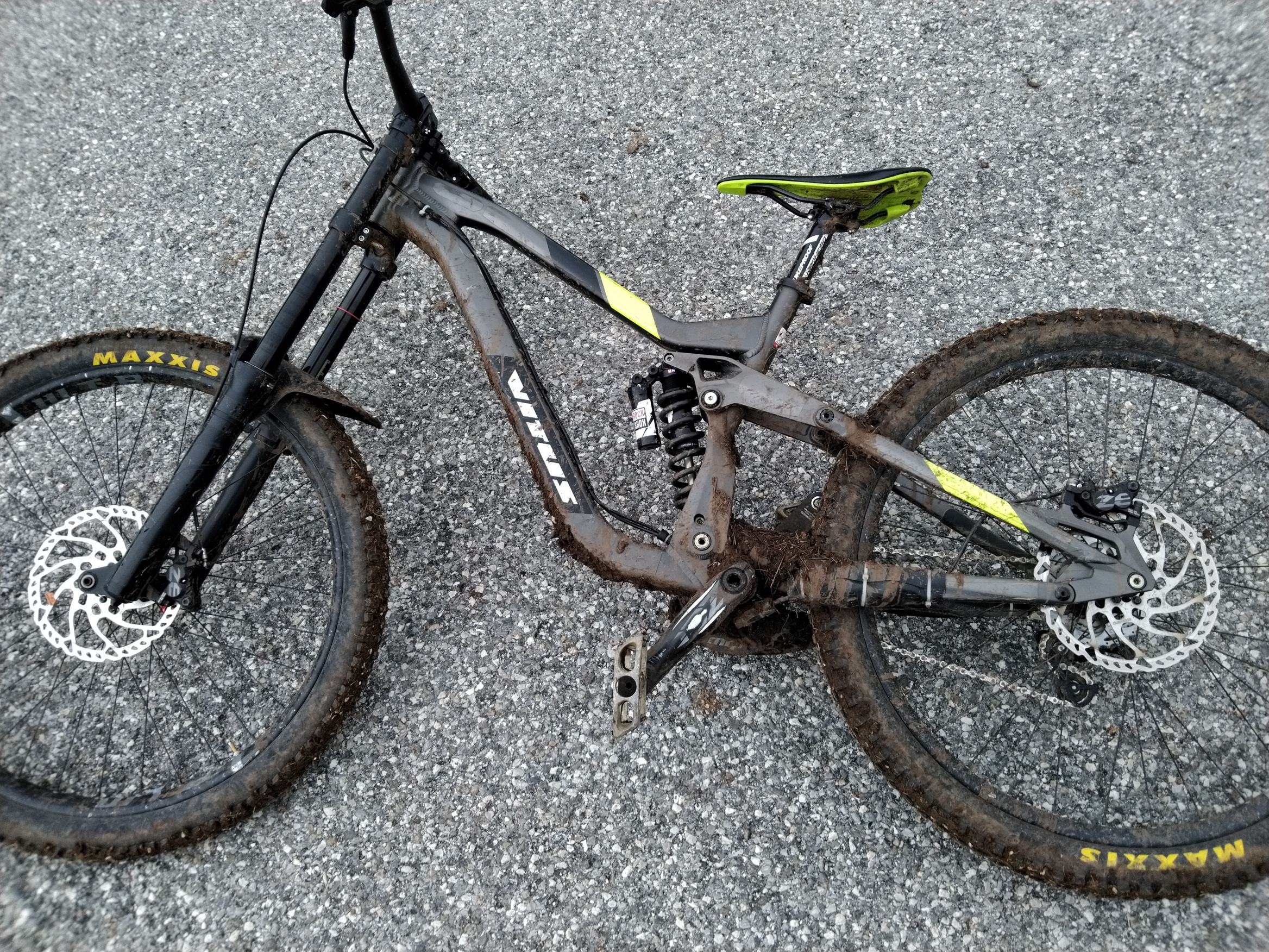 Les pneus: à l'avant, c'est un giant en 40mm qui marche ma fois très bien. A l'arrière, c'etait la derniere sortie d'un wtb riddler en 37. Tres bien mais relativement soluble :