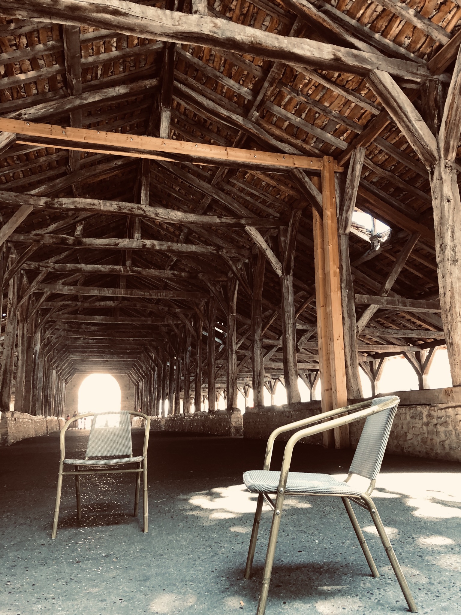 La halle de Crémieu. Monument historique. Pas le temps de flâner ni d'aller à la brasserie locale, il reste des bornes...