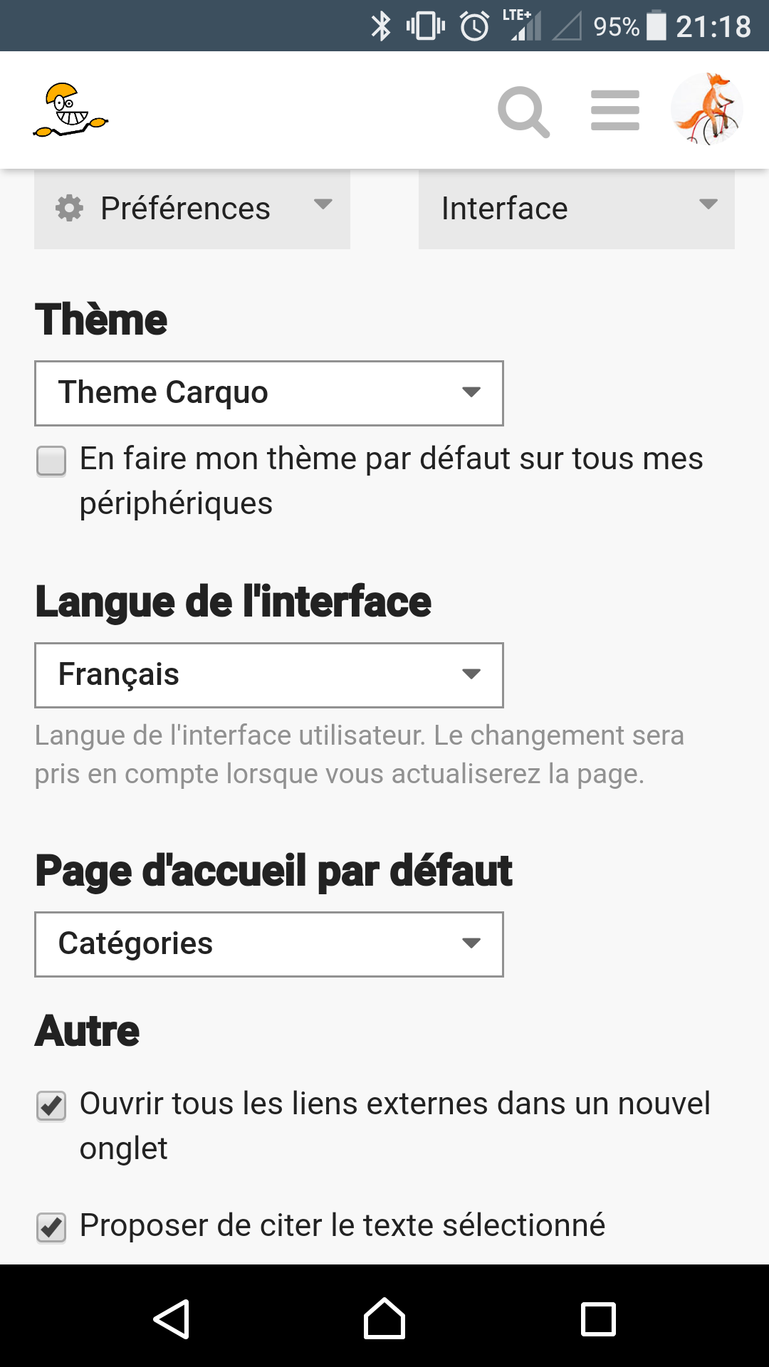 Parce que sur le téléphone, j'ai bien le thème Carquo qui simplifie l'affichage !