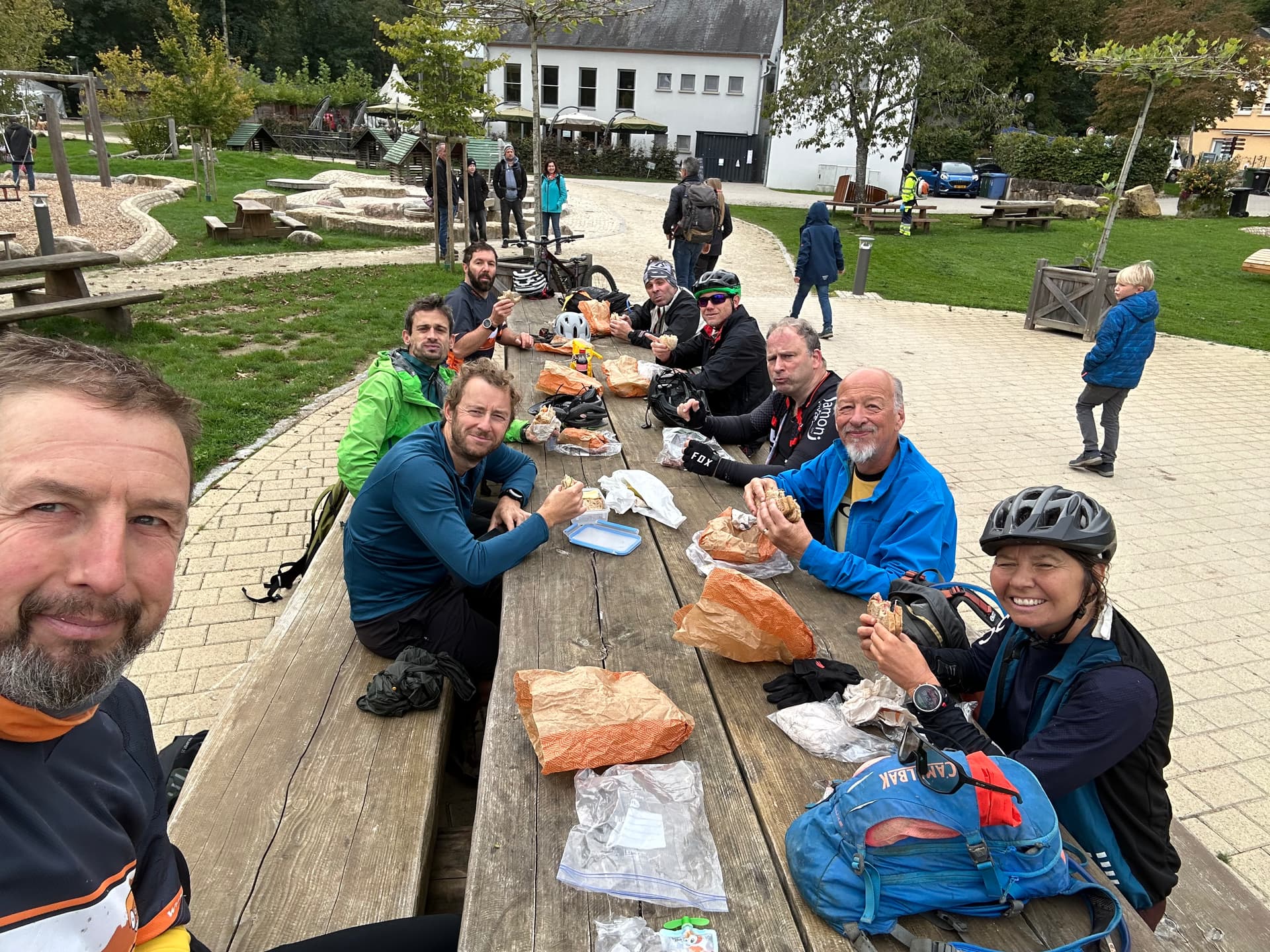 On se prendra quand même une belle drache ( c’est du belge ça) vers 14h30. Deux guerriers déposeront les armes juste après, mais ce ne seront pas les seuls puisque votre serviteur décidera également de ne pas prolonger son aventure par manque de batterie dans son cuisso-moteur . Retour plus tôt à l’auberge mais C…. et moi essuierons aussi cette mini tempête qui s’est abattue sur la région vers 16h. En forêt le casque était le bienvenu au vu de ce qui tombait de nos voisins.