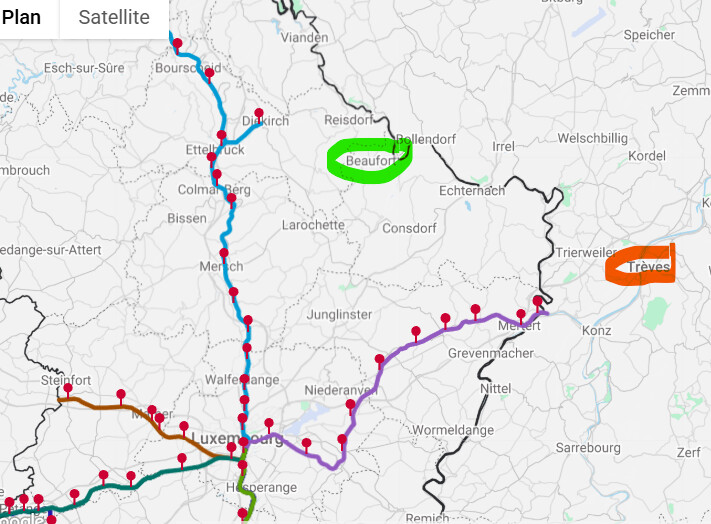 Si tu arrives à rallier la gare de Luxembourg, il faut ensuite prendre un train puis j’avais identifié 40km de vélo.