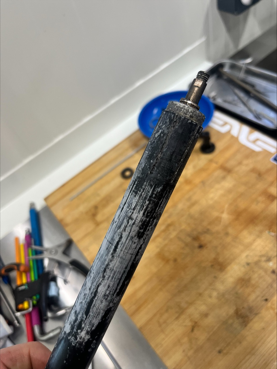 C’est quand même poncé sur un cm. Le cintre je le trouvais un peu trop haut pour le vélo, je voulais essayer avec 1cm plus bas, j’ai ca qui traîne à la maison.