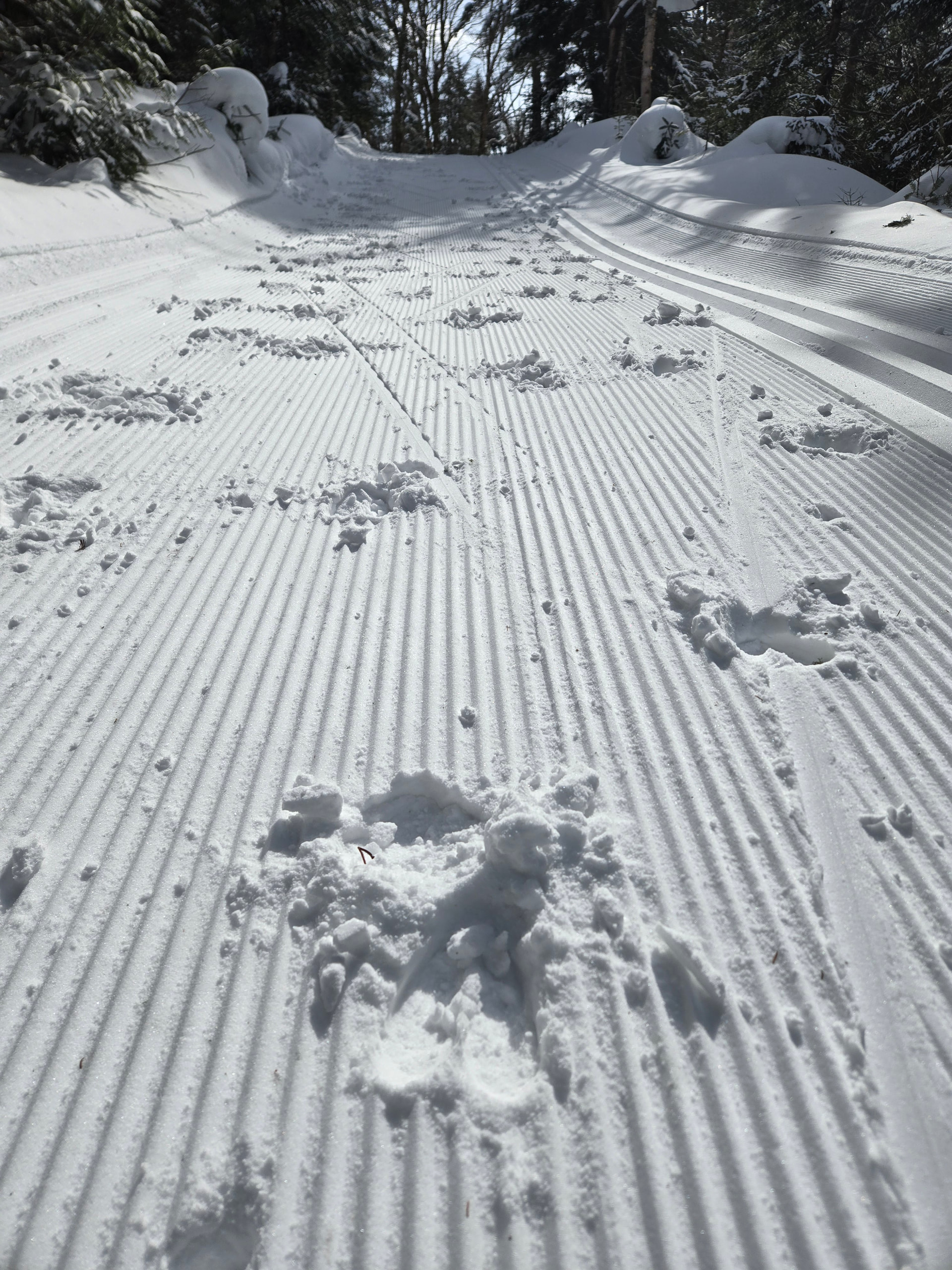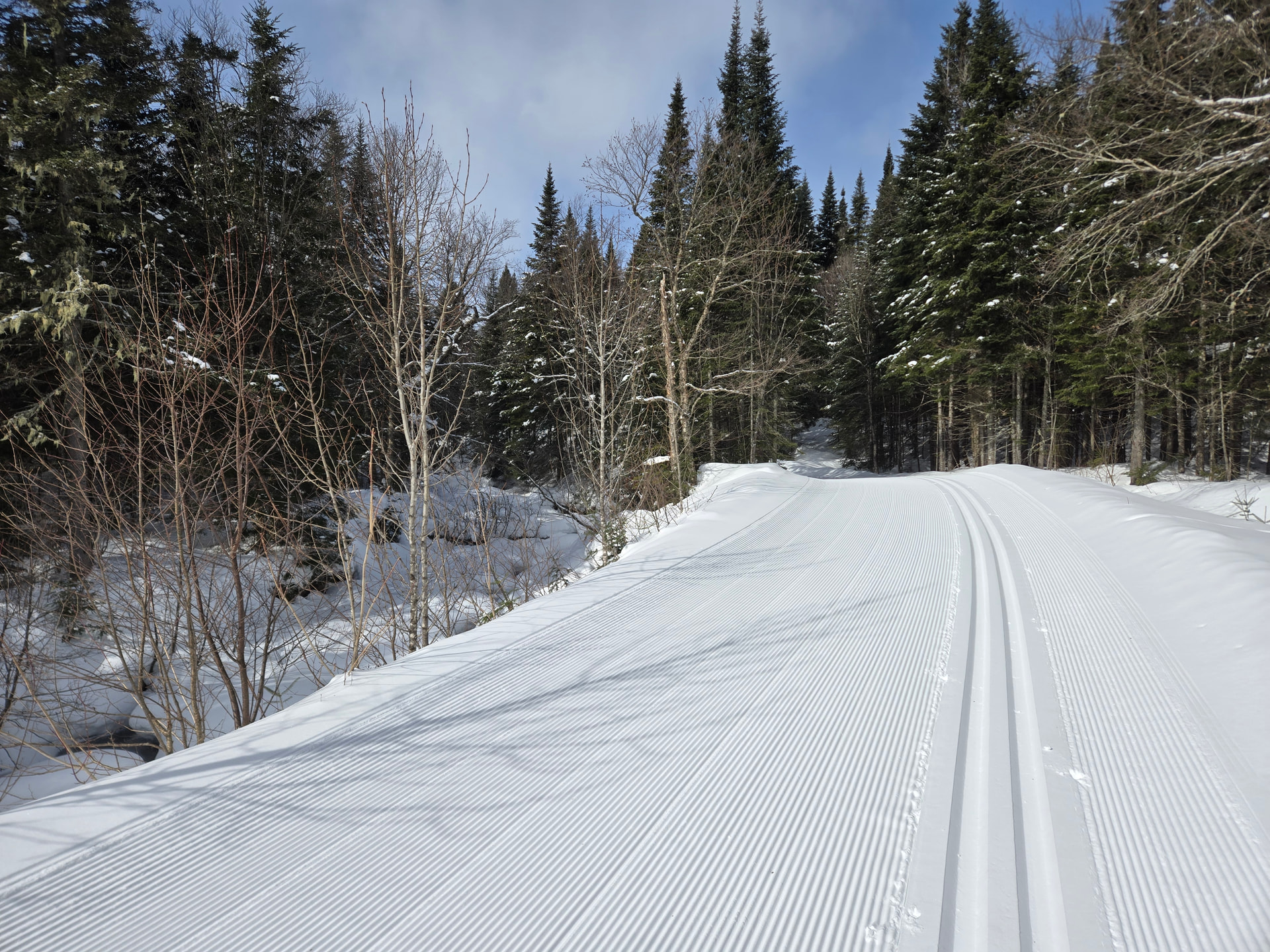Ouverture de notre semaine de ski à l'est de Québec. Il y avait juste David d'assez courageux pour m'accompagner par -18c ce matin. La dameuse est passée juste pour nous…