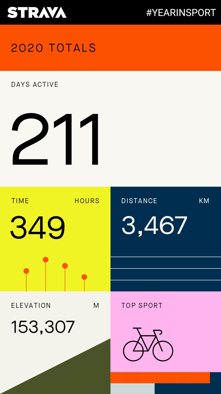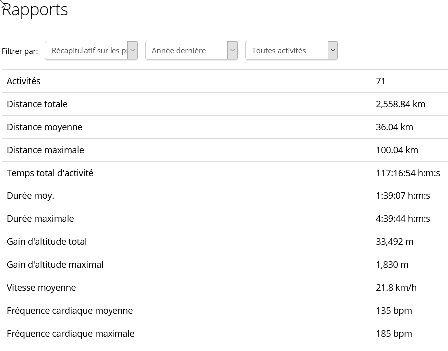 Ah oui, je vois qu’une vélo, 2020 c’est ma meilleure année depuis que je suis sur Strava (2018) comme quoi le déconfinement m’a surmotivé.