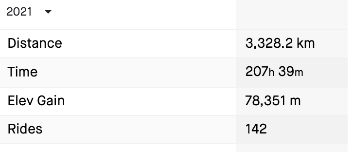 c'est un bilan 2021 sportif raisonnable pour moi, malgré 3 mois avec une clavicule cassée pour mes 50 ans, suivi d'une grosse chute sur visage et épaule. Très loin derriere 2019 (année pleine avant covid) et meme 2020 (année de confinements).